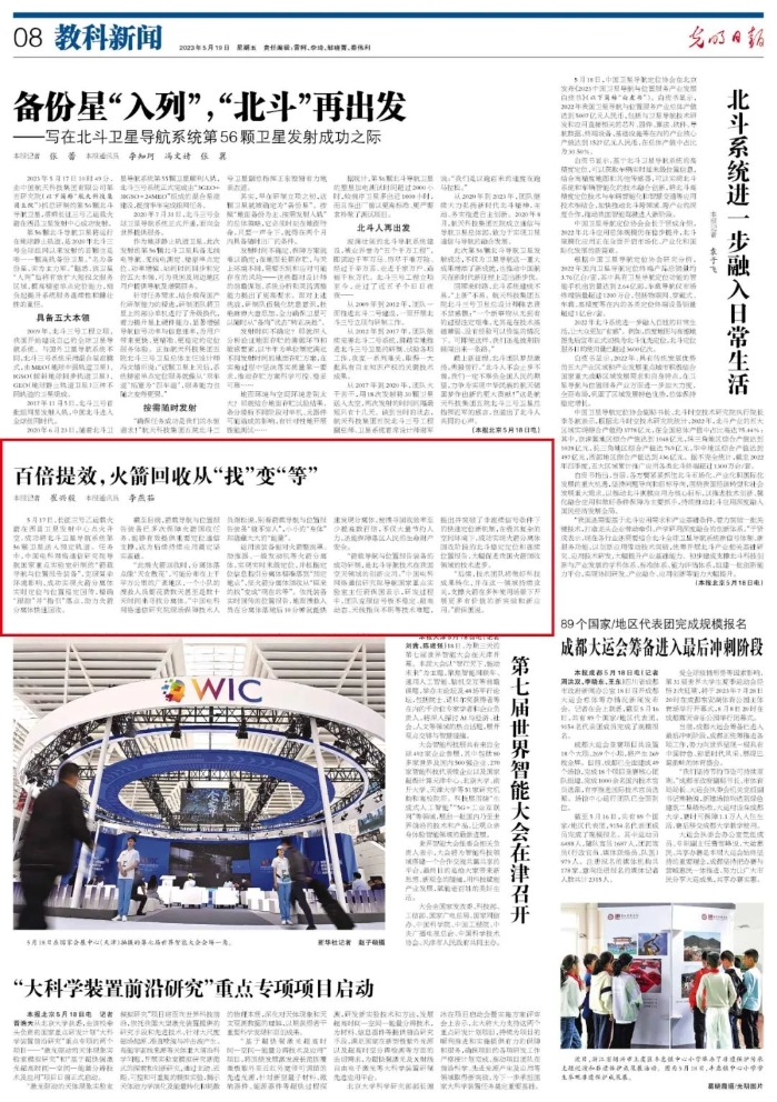 编者按:5月17日,第五十六颗北斗导航卫星成功发射。本次任务中,中国电科研制的“箭载导航与位置报告装备”,成功实现火箭分离体实时定位与位置稳定回传,精确“跟踪”并“指引”落点,助力火箭分离体快速回收的实践成果,受到光明日报、中国日报、中国网等中央主流媒体关注报道,引起热烈反响。