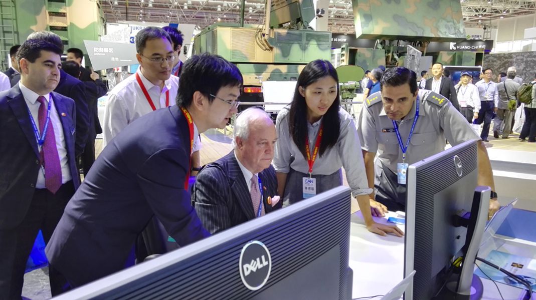 ↑ 防务展区中国电科技术专家在讲解