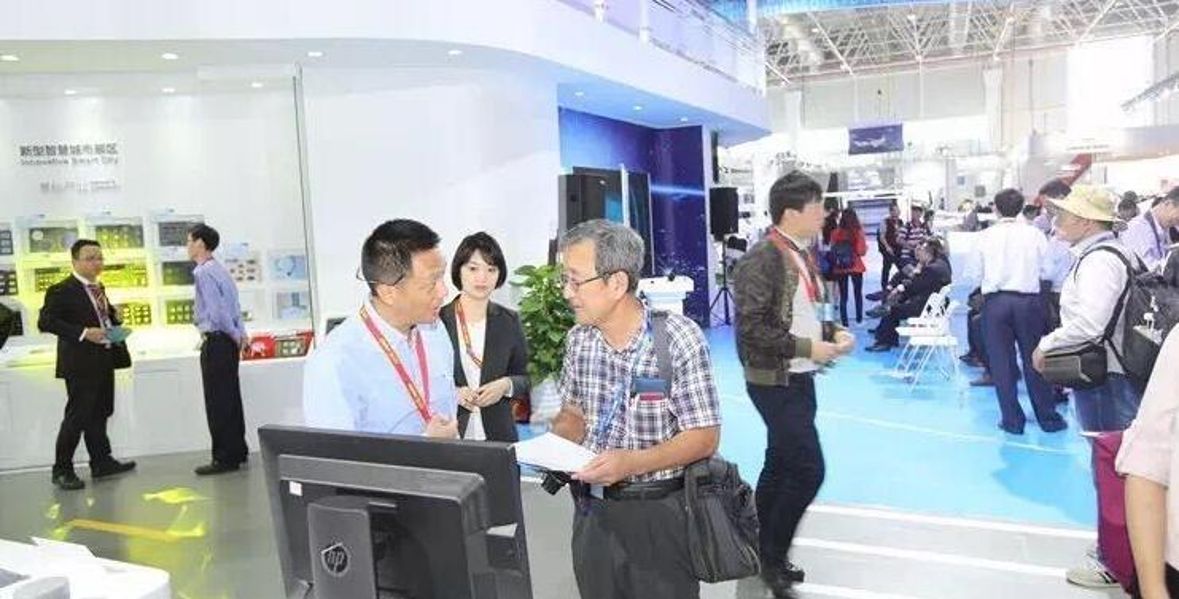 ↑ 新型智慧城市展区中国电科技术专家在讲解