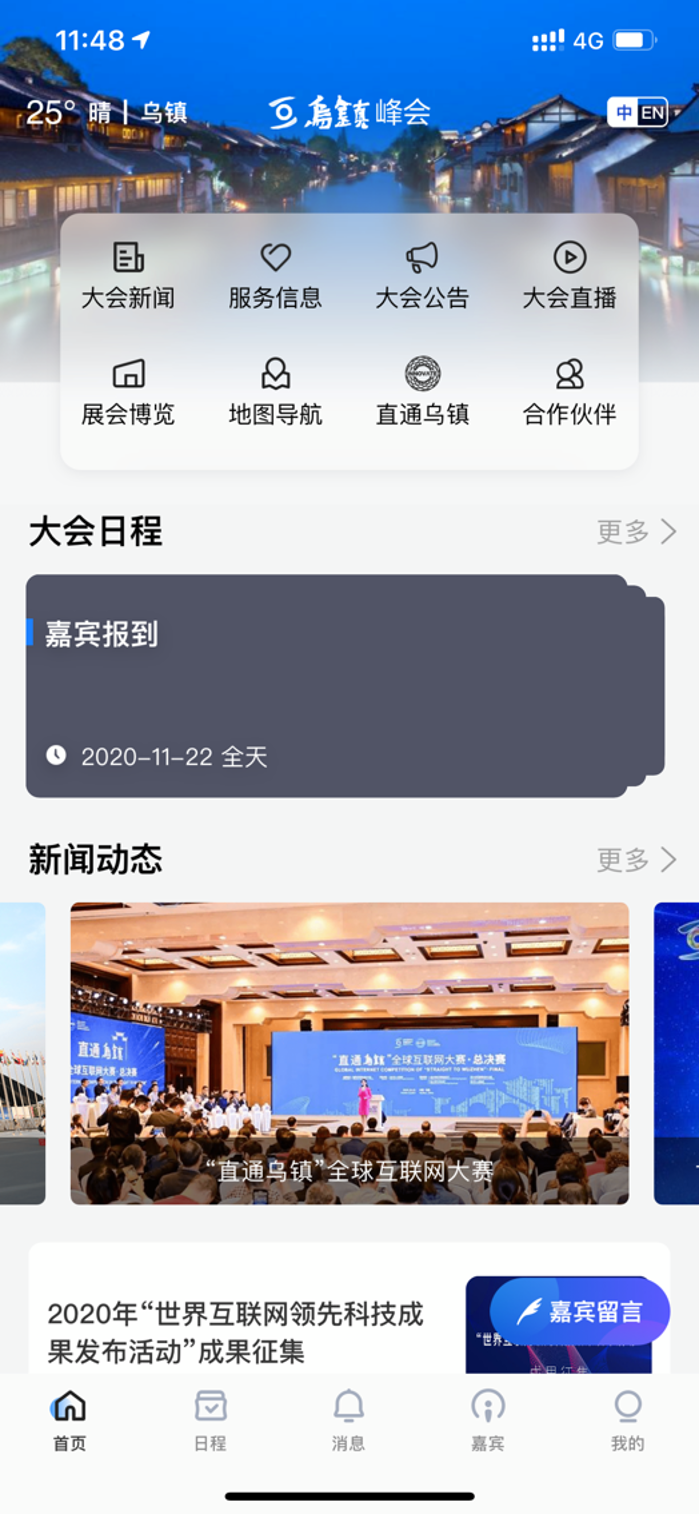 为适应本届论坛“数字赋能、共创未来——携手构建网络空间命运共同体”主题和风格,团队对乌镇峰会App版面风格进行全线升级,对主视觉进行更精准匹配,并优化了“大会新闻”“嘉宾留言”“走进乌镇”等栏目,使信息传递更精准、交互体验更舒心。
